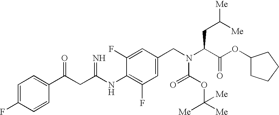 - CYQVPJZYQOCAJY-SANMLTNESA-N CC(C)C[C@@H](C(=O)OC1CCCC1)N(CC1=CC(F)=C(NC(=N)CC(=O)C2=CC=C(F)C=C2F)C(F)=C1)C(=O)OC(C)(C)C Chemical compound CC(C)C[C@@H](C(=O)OC1CCCC1)N(CC1=CC(F)=C(NC(=N)CC(=O)C2=CC=C(F)C=C2F)C(F)=C1)C(=O)OC(C)(C)C CYQVPJZYQOCAJY-SANMLTNESA-N 0.000 description 1