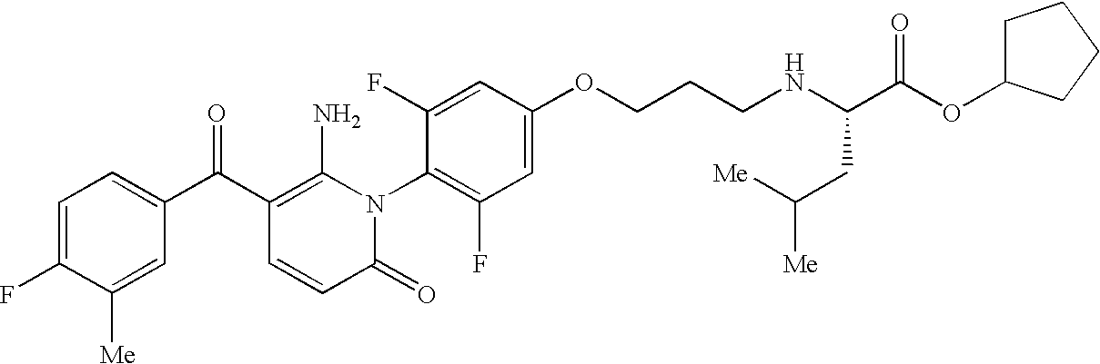 - KDMMJQKGPVJTNU-FQEVSTJZSA-N CC(C)C[C@H](NCC1=CC(F)=C(N2C(=O)C=CC(C(=O)C3=CC=C(F)C=C3F)=C2N)C(F)=C1)C(=O)O Chemical compound CC(C)C[C@H](NCC1=CC(F)=C(N2C(=O)C=CC(C(=O)C3=CC=C(F)C=C3F)=C2N)C(F)=C1)C(=O)O KDMMJQKGPVJTNU-FQEVSTJZSA-N 0.000 description 1