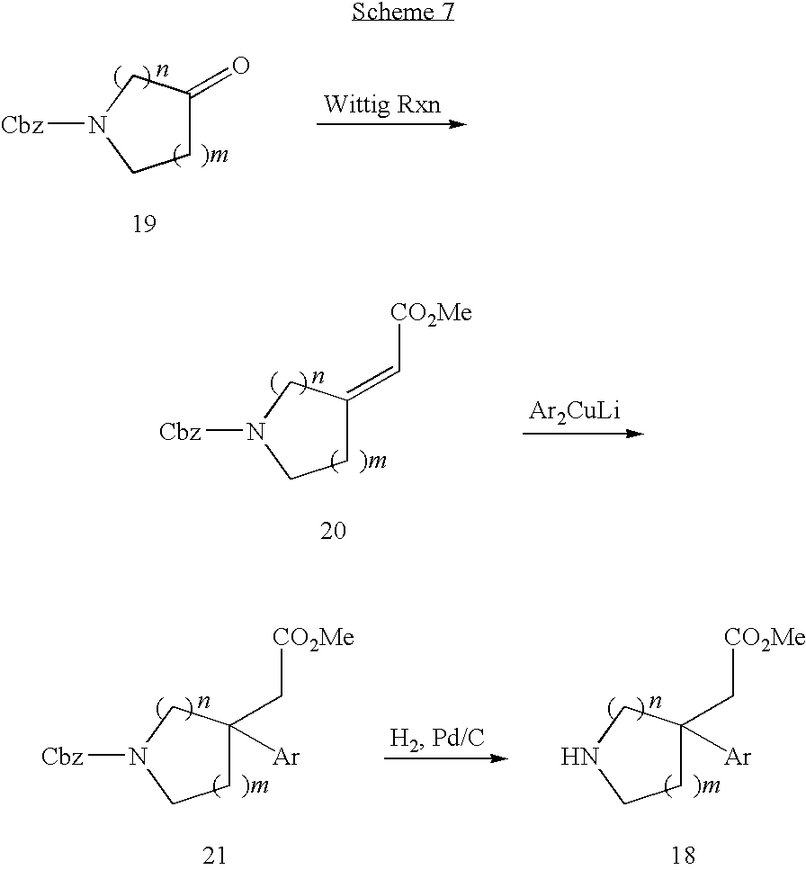 - JRUKBBFBCVOKOA-NQTVHYIESA-N C.COC(=O)/C=C1/CCN(C(=O)OCC2=CC=CC=C2)C1.COC(=O)CC1([Ar])CCN(C(=O)OCC2=CC=CC=C2)C1.COC(=O)CC1([Ar])CCNC1.O=C1CCN(C(=O)OCC2=CC=CC=C2)C1.[Ar].[Ar].[Li][Cu] Chemical compound C.COC(=O)/C=C1/CCN(C(=O)OCC2=CC=CC=C2)C1.COC(=O)CC1([Ar])CCN(C(=O)OCC2=CC=CC=C2)C1.COC(=O)CC1([Ar])CCNC1.O=C1CCN(C(=O)OCC2=CC=CC=C2)C1.[Ar].[Ar].[Li][Cu] JRUKBBFBCVOKOA-NQTVHYIESA-N 0.000 description 1