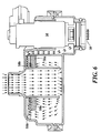 FIG. 6 is a cross sectional view of the air filter assembly used in FIG. 1 according to the disclosure, such cross section being taken along line 4-4 in FIG. 3 as in FIG. 4, here showing with arrows the flow of air though the air filter assembly during a later stage in the filtration according to the disclosure.