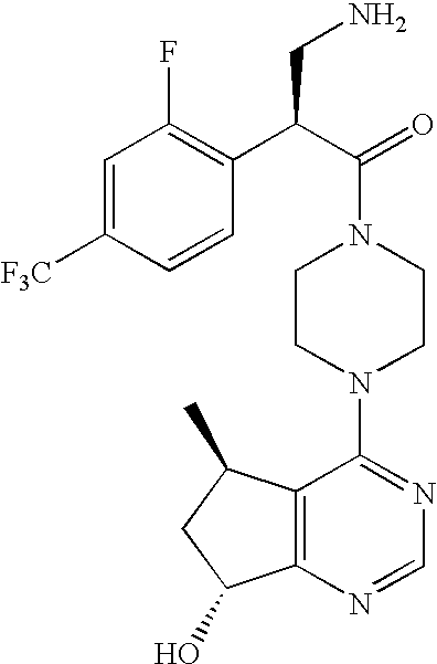 - JWTBZMPUBOQQQY-JBBXEZCESA-N C[C@H]1CN(C(=O)[C@H](N)CC2=CC(F)=C(Cl)C=C2)CCN1C1=C2CC[C@@H](O)C2=NC=N1 Chemical compound C[C@H]1CN(C(=O)[C@H](N)CC2=CC(F)=C(Cl)C=C2)CCN1C1=C2CC[C@@H](O)C2=NC=N1 JWTBZMPUBOQQQY-JBBXEZCESA-N 0.000 description 2