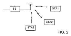 - the wireless local area network shown comprises a base station BS and terminals STA 1 , STA 2 , STA 3 , which have a radio channel connection to the base station BS.