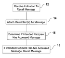 - the email can be received by any appropriate entity, such as an email server, a mail user agent (MUA), a network server, a general purpose processor, a laptop computer, or the like, for example. If it is determined (step 16 ) that the message has not been accessed by an intended recipient, the message is recalled, at step 18 , for the intended recipient.