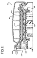 FIG. 11 is a top section view of the pump and valve station in which the cassette as shown in FIG. 6 is carried for use;