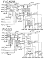 FIGS. 52A and 52B are schematic views of the blood processing circuit of FIG. 51, showing the programming of the cassette to carry out different fluid flow tasks in connection with drawing whole blood from a blood source;