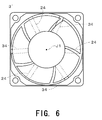 - the cooling fans are required to have improved air flow characteristics, i.e., an improved static pressure vs. flow rate curve with the increase in the amount of heat generation associated with performance improvement of the electronic parts and the increase in the density of the electronic parts associated with size reduction of the casing.