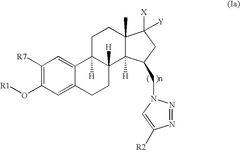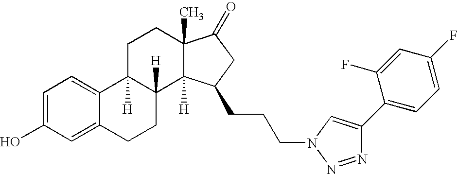 - OHSIKDYNUYDGSS-YRAHNPESSA-N (8r,9s,13s,14s,15r)-15-[2-[4-(3,5-difluorophenyl)triazol-1-yl]ethyl]-3-hydroxy-13-methyl-7,8,9,11,12,14,15,16-octahydro-6h-cyclopenta[a]phenanthren-17-one Chemical compound C([C@H]1[C@H]2[C@H]3[C@@H](C4=CC=C(O)C=C4CC3)CC[C@@]2(C(C1)=O)C)CN(N=N1)C=C1C1=CC(F)=CC(F)=C1 OHSIKDYNUYDGSS-YRAHNPESSA-N 0.000 claims description 7