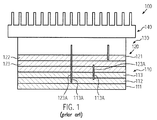 - FIG. 1 schematically illustrates a cross-sectional view of a three-dimensional semiconductor configuration 100 according to a typical conventional architecture.