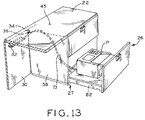 - Security panel 44 is disposed behind drawers 38 , 39 , 40 , and 41 to provide a barrier to prevent access to drawers 38 , 39 , 40 , and 41 upon opening hinged access door 28 .