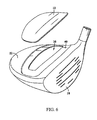 - FIG. 8 is a partially exploded perspective view of a third preferred embodiment of a golf club head in accordance with the invention, depicting a crown, including a surface veil covering a top portion of the club head, separated from a body portion.