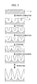 FIG. 2 is a series of drawings showing the process for forming anodic oxidized porous alumina having tapered pores by repeating anodic oxidation and etching in the present invention.