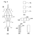 FIG. 4 (a-e) collectively shows several schematic and sectional views of a converging apparatus.