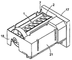 FIG. 2 shows, as seen from the side of the end wall 18 and the box 21, the ice maker with the tray 1 in tilted setting in perspective view. The upper edges of the sectors 7 at the transverse walls 2 of the tray 1 extend horizontally.