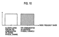 A pattern 5 shows an example of restricting the number of calls on the dedicated physical channels to 0 call. In this case, the radio frequency band using the shared physical channel and the radio frequency band using the dedicated physical channels are separated as shown in FIG. 10.
