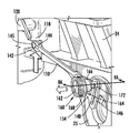 The lever 110 is rotatably coupled to the arm 24 at a pivot 140 (e.g., with a fastener). According to an exemplary embodiment, the lever 110 includes a first member or arm 152 and a second member or arm 154 connecting the pivot 140 of the lever 110 to the second end 146 of the lever 110. According to other exemplary embodiments, more or less arms may be used to connect the pivot 140 to the second end 146.