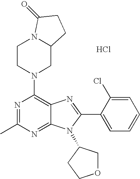 8-(2-Cyclopropyl-pyridin-3-yl)-2- methyl-6-(4-methyl-piperazin-1- yl)-9-(R)-tetrahydro-furan-3-yl-9H- purine hydrochloride salt |