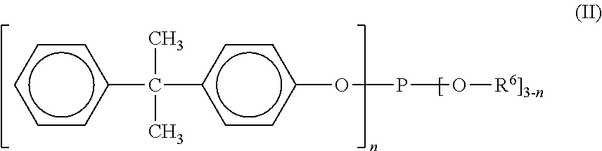In another part of the invention, formula (I) will be as illustrated in formula (II) and is a mixture of phosphites,