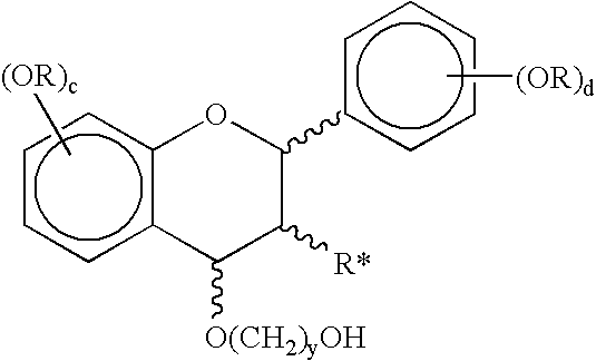 In the above process, the 4-position of the protected polyphenol monomer may be oxidatively functionalized using a quinone oxidizing agent in the presence of a diol, e.g., ethylene glycol when y is 2.