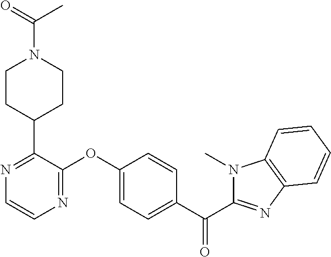 - LKOQPLBSNVGZAI-UHFFFAOYSA-N COC(=O)N1CCC(C2=NC=CN=C2OC2=CC=C(C(=O)C3=NC4=C(C=CC=C4)N3)C=C2)CC1 Chemical compound COC(=O)N1CCC(C2=NC=CN=C2OC2=CC=C(C(=O)C3=NC4=C(C=CC=C4)N3)C=C2)CC1 LKOQPLBSNVGZAI-UHFFFAOYSA-N 0.000 description 3