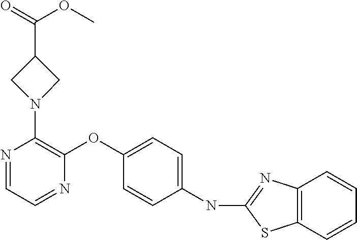 - OMJGZDVNBSTDBW-UHFFFAOYSA-N O=C(O)C1CN(C2=C(OC3=CC=C(NC4=NC5=C(C=CC=C5)S4)C=C3)N=CC=N2)C1 Chemical compound O=C(O)C1CN(C2=C(OC3=CC=C(NC4=NC5=C(C=CC=C5)S4)C=C3)N=CC=N2)C1 OMJGZDVNBSTDBW-UHFFFAOYSA-N 0.000 description 3