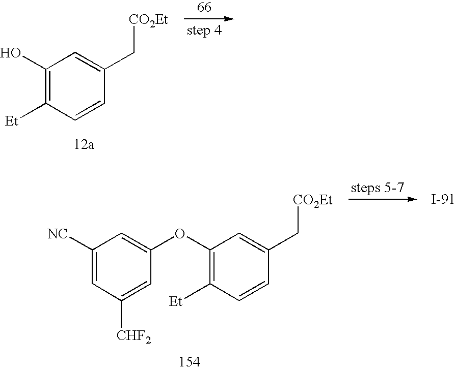 - QWXQNHGPSDRIKT-UHFFFAOYSA-N CCOC(=O)CC1=CC(O)=C(CC)C=C1.CCOC(=O)CC1=CC(OC2=C(Cl)C(Br)=CC(Br)=C2)=C(CC)C=C1.FC1=C(Cl)C(Br)=CC(Br)=C1.[I-38] Chemical compound CCOC(=O)CC1=CC(O)=C(CC)C=C1.CCOC(=O)CC1=CC(OC2=C(Cl)C(Br)=CC(Br)=C2)=C(CC)C=C1.FC1=C(Cl)C(Br)=CC(Br)=C1.[I-38] QWXQNHGPSDRIKT-UHFFFAOYSA-N 0.000 description 1