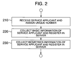 - the user is identified by the basic information of the service applicant that is associated with the registered biometrics information which is judged as a successful collation.