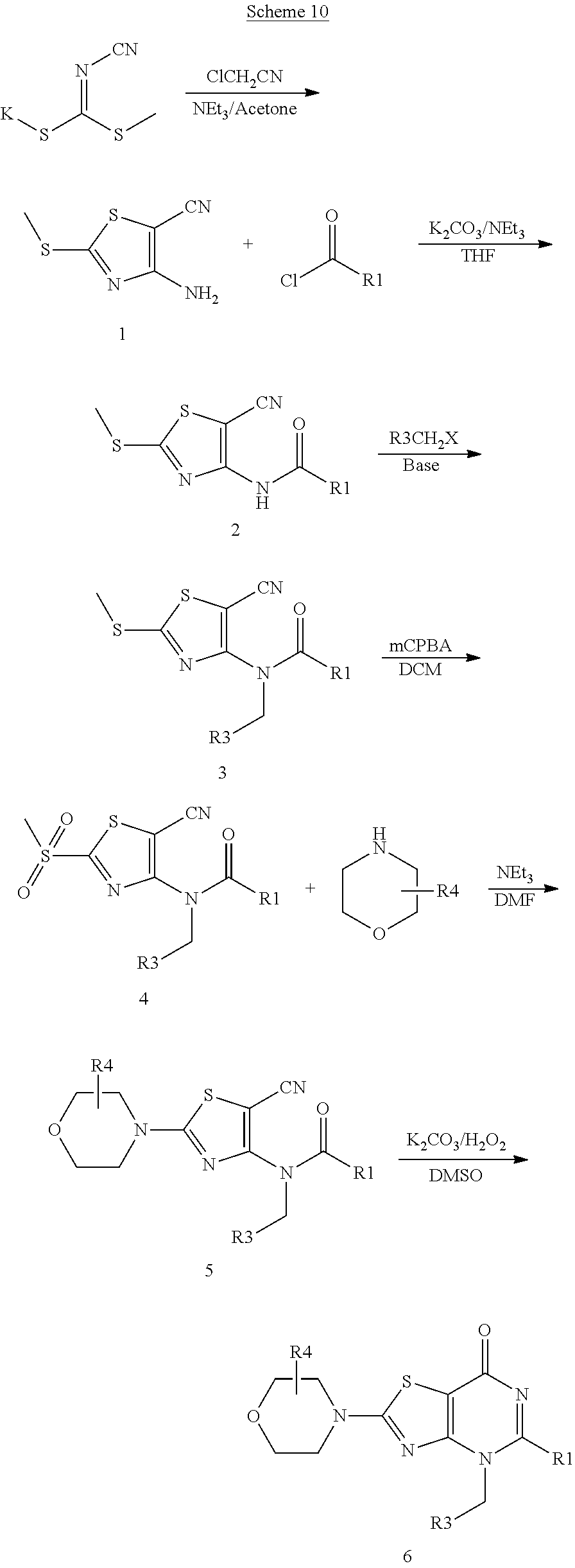 Preparation of 4-[(3-chloro-2-methylphenyl)methyl]-2-(4-morpholinyl)-5-(1-pyrrolidinylmethyl)[1,3]thiazolo[4,5-d]pyrimidin-7(4H)-one