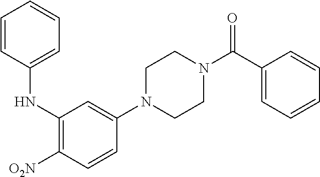 - HKGMSNQZEHZANE-UHFFFAOYSA-N 3-[3-(benzylamino)-4-nitrophenyl]-n-phenylbenzamide Chemical compound [O-][N+](=O)C1=CC=C(C=2C=C(C=CC=2)C(=O)NC=2C=CC=CC=2)C=C1NCC1=CC=CC=C1 HKGMSNQZEHZANE-UHFFFAOYSA-N 0.000 claims description 7