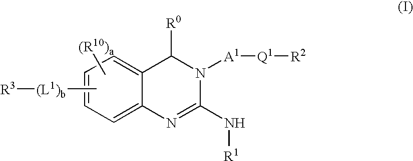One skilled in the art will recognize that some of the variables (e.g. R0, R1, L1, R2, R10, etc.) appear in compounds of formula (I), formula (II) and t or formula (III). One skilled in the art will further recognize that wherein a particular substituent is selected for a given variable for a compound of formula (I), said selection is not intended to limit the scope of said variable for compounds of formula (II) and/or compounds of formula (III). Similarly, the selection of a particular substituent for a given variable for a compound of formula (II), is not intended to limit the scope of said variable for compounds of formula (I) and/or compounds of formula (III). Similarly, the selection of a particular substituent for a given variable for a compound of formula (III), is not intended to limit the scope of said variable for compounds of formula (I) and/or compounds of formula (II).