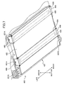 Four corners 431G of the scanner frame 431 are pressed against the main frame 110 (see FIG. 4) by elastically deformable pressing members (not shown), such as U-shaped leaf spring clips. Since the four corners 431G is not fixed on the main frame 110, this construction allows the longitudinal ends of the scanner frame 431 to be slidingly displaced relative to the main frame 110, while the positions of the protrusions 434 relative to the main frame 110 remain unchanged.