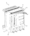 FIG. 3 is a perspective view of the above conventional housing device 101 from which the top plate of the baffle section 112 is removed to enable checking of the configuration of the upper part of the housing 111 and the inside of the baffle section 112. As illustrated, on the upper part of the housing 111, there are aligned the openings of slots SL1, SL2, SL3, and so forth corresponding to a plurality of PIUs, which are mounted in the connectors on the BWB 113. Each PIU or filler panel is installed in the housing 111, by which each slot SL forms a substantially independent air flow path. The baffle section 112 is hollow. Cooling air (exhaust air) flows discharged from the openings of the slots SLs are mixed in the baffle section 112 and induced to the air outlet.