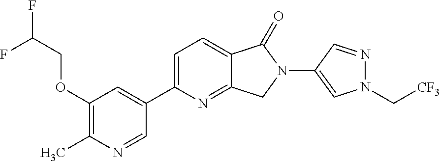 - VMQZNEYGWXZVCG-UHFFFAOYSA-N CC1=C2C(=O)N(C3=NNC=C3)C(C)C2=NC(C2=CC(OCC(F)F)=CN=C2)=C1 Chemical compound CC1=C2C(=O)N(C3=NNC=C3)C(C)C2=NC(C2=CC(OCC(F)F)=CN=C2)=C1 VMQZNEYGWXZVCG-UHFFFAOYSA-N 0.000 description 2