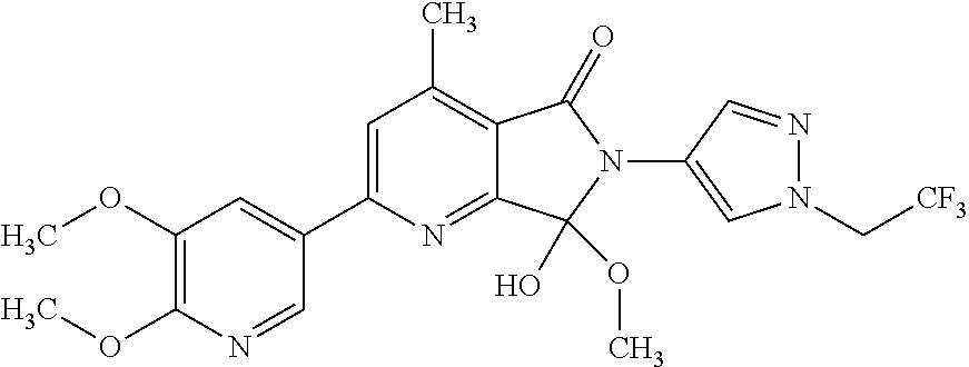 - JNRWCXCZRVDGLT-UHFFFAOYSA-N CCN1C=C(N2CC3=CC(C4=CC(OC)=C(OC)N=C4)=CC=C3C2=O)C=N1 Chemical compound CCN1C=C(N2CC3=CC(C4=CC(OC)=C(OC)N=C4)=CC=C3C2=O)C=N1 JNRWCXCZRVDGLT-UHFFFAOYSA-N 0.000 description 2
