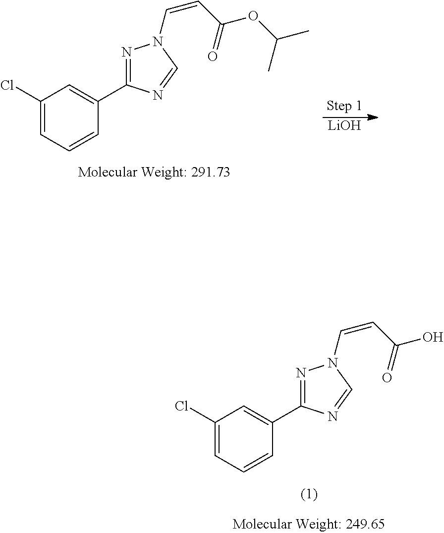 - UCIXDQNEQYFXRQ-PYWUXJIPSA-M CC(C)OC(=O)/C=C\N1C=NC(C2=CC=CC(Cl)=C2)=N1.O=C(O)/C=C\N1C=NC(C2=CC=CC(Cl)=C2)=N1.[Li]O Chemical compound CC(C)OC(=O)/C=C\N1C=NC(C2=CC=CC(Cl)=C2)=N1.O=C(O)/C=C\N1C=NC(C2=CC=CC(Cl)=C2)=N1.[Li]O UCIXDQNEQYFXRQ-PYWUXJIPSA-M 0.000 description 3