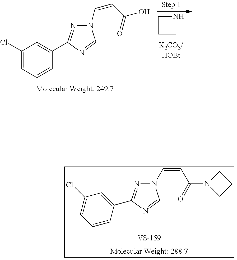 - OVETUQYUYYBNBQ-SBXWMAMMSA-N C1CNC1.O=C(/C=C\N1C=NC(C2=CC(Cl)=CC=C2)=N1)N1CCC1.O=C(O)/C=C\N1C=NC(C2=CC(Cl)=CC=C2)=N1 Chemical compound C1CNC1.O=C(/C=C\N1C=NC(C2=CC(Cl)=CC=C2)=N1)N1CCC1.O=C(O)/C=C\N1C=NC(C2=CC(Cl)=CC=C2)=N1 OVETUQYUYYBNBQ-SBXWMAMMSA-N 0.000 description 2