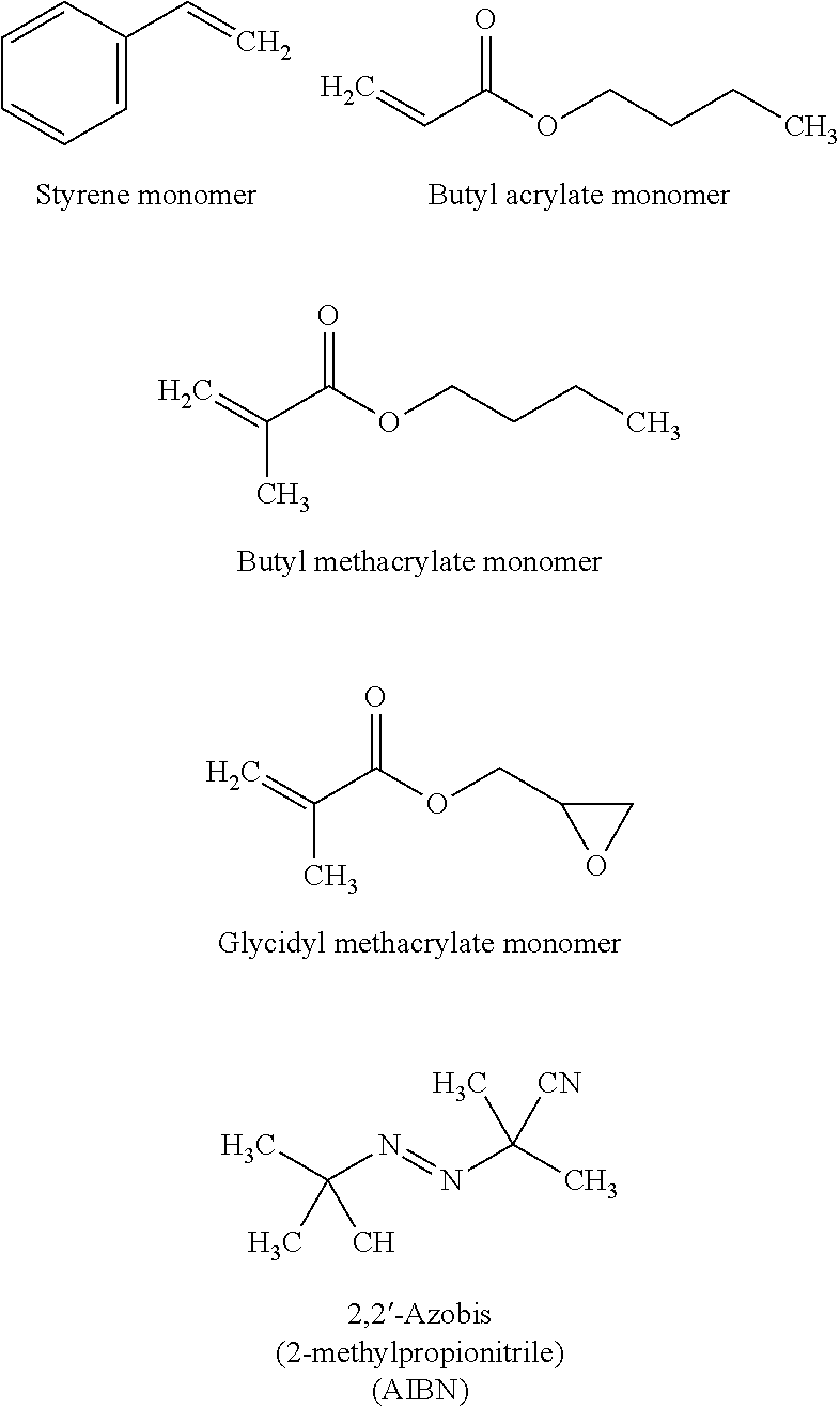 - the acrylic polymer resin is synthesized by a free radical polymerization using a mixture of styrene and several types of acrylates (such as butyl acrylate, butyl methacrylate, and glycidyl methacrylate) as monomers.