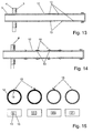 As a further possibility to influence the exhaust gas effusion, in the example of FIG. 14 flow obstacles 15 are arranged over at least some of the outlet openings 13. The flow obstacles 15 are presently formed as slide-on sheet metal rings, which, at the positions of the overlay with the outlet openings 13, comprise flaps which are of defined dimension and set up. Depending on the position at the tube section 12, the flaps or flow obstacles are differently shaped and/or set up. For reasons of clarity, FIG. 15 displays four sectional views through the four sheet metal rings shown in FIG. 14, as well as a respective partial plain view on the flaps.