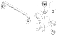 - Each bracket 21 comprises two downwardly extending arms 211 defining therebetween an accommodation space 210 , two pivot holes 212 respectively and transversely located on the two downwardly extending arms 211 , and two couplings 22 respectively coupled between the two brackets 21 of the handle 2 and the mounting barrels 1 .