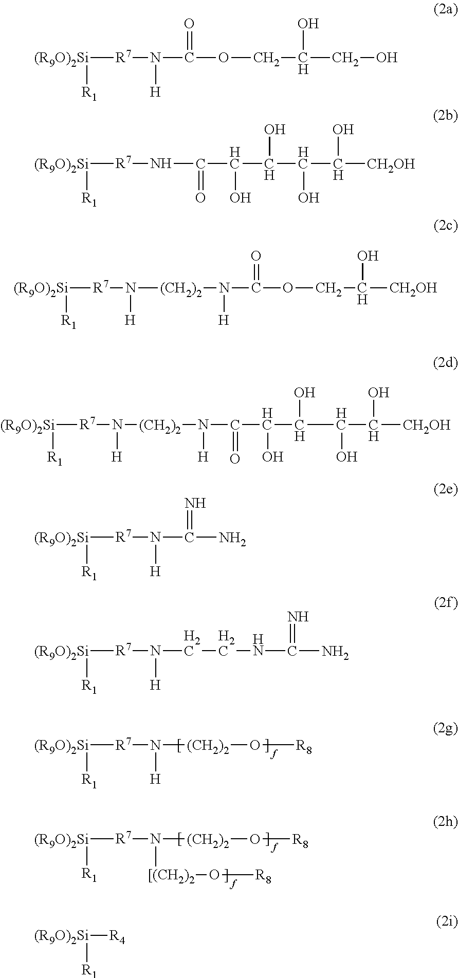 - JP 2002-167437-A describes laterally guanidino-functionalized polysiloxanes prepared by reacting the corresponding aminopolysiloxanes with cyanamide.