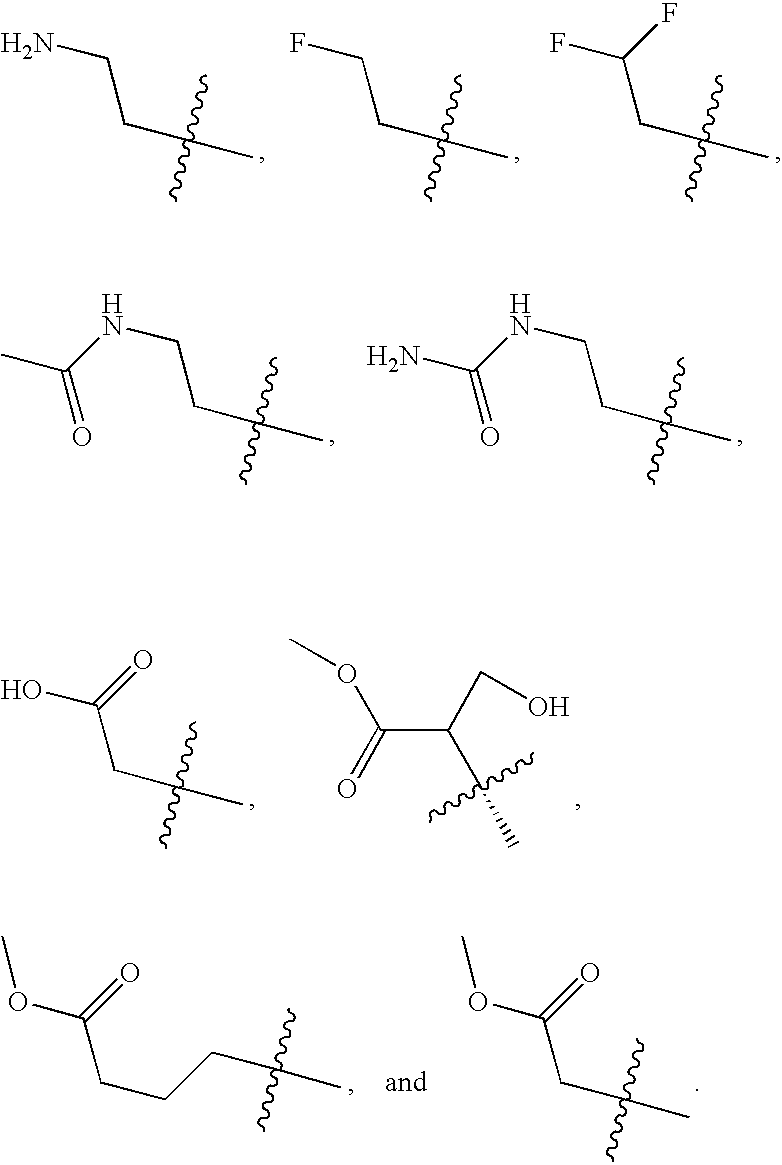 Unless otherwise noted, “alkyl” as used herein, whether used alone or as part of a substituent group, refers to a saturated, branched, or straight-chain monovalent hydrocarbon radical derived by the removal of one hydrogen atom from a single carbon atom of a parent alkane. Typical alkyl groups include, but are not limited to, methyl; ethyls such as ethanyl; propyls such as propan-1-yl, propan-2-yl, cyclopropan-1-yl.; butyls such as butan-1-yl, butan-2-yl, 2-methyl-propan-1-yl, 2-methyl-propan-2-yl, cyclobutan-1-yl and the like. In preferred embodiments, the alkyl groups are C1-6alkyl, with C1-3 being particularly preferred. “Alkoxy” radicals are oxygen ethers formed from the previously described straight or branched chain alkyl groups. In some embodiments, the alkyl or alkoxy are independently substituted with one to five, preferably one to three groups including, but not limited to, oxo, amino, alkoxy, carboxy, heterocyclyl, hydroxyl, heteroaryl, cycloalkyl, CONH2, NR′R″, NHCOR′, C(O)OR′, NHCON(R′)(R″), and halo (F, Cl, Br, or 1) wherein R′ and R″ are independently H or C1-4 alkyl.