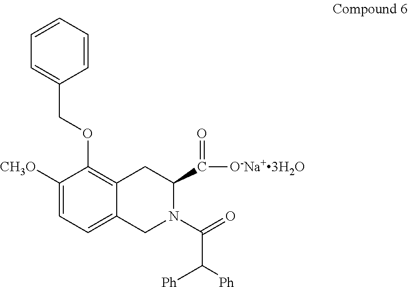 The sodium salt of (S)-2-(diphenylacetyl)-1,2,3,4-tetrahydro-6-methoxy-5-(phenylmethoxy)-3-isoquinoline carboxylic acid (hereinafter referred to as Compound 2) has the formula: