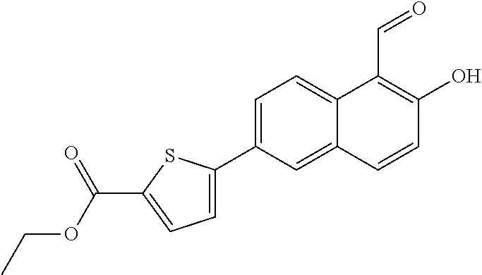 - OVMSLXCDVVLIPE-UHFFFAOYSA-N CCOC(=O)C1=CC=C(C2=CC=C3C(=C2)C=CC(O)=C3C=O)S1 Chemical compound CCOC(=O)C1=CC=C(C2=CC=C3C(=C2)C=CC(O)=C3C=O)S1 OVMSLXCDVVLIPE-UHFFFAOYSA-N 0.000 description 4