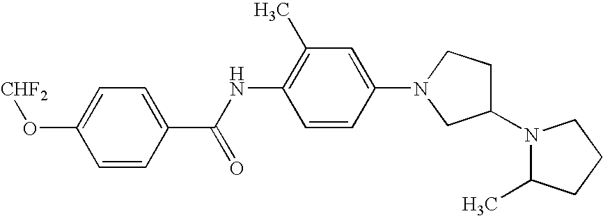 - 5-fluoro-2-methyl-N-[2-methyl-4-(2(2S)-methyl-[1,3′(3′R)]bipyrrolidinyl-1′-yl)-phenyl]-benzamide;