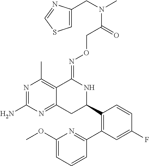 - PPUAOQIMVXFDFE-AJBULDERSA-N CC1=C2C(=NC(N)=N1)CC(C1=C(C3=CC=CN=C3F)C=C(F)C=C1)C/C2=N\OC(C)(C)C Chemical compound CC1=C2C(=NC(N)=N1)CC(C1=C(C3=CC=CN=C3F)C=C(F)C=C1)C/C2=N\OC(C)(C)C PPUAOQIMVXFDFE-AJBULDERSA-N 0.000 description 1