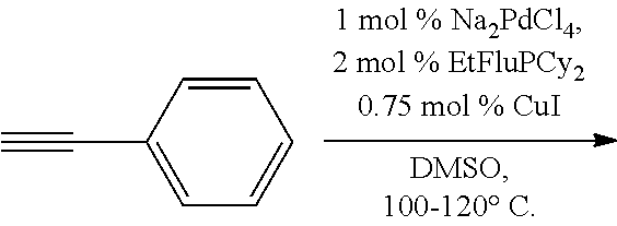 Until some years ago, exclusively iodides, bromides, and triflates were used as educts in most of the catalyzed coupling reactions described. Obviously, organic chlorides were not employed as reactants although they should be the most appropriate reactants due to their low costs and great variety. Unfortunately, the chlorides proved to be generally not reactive under the reaction conditions used for coupling of iodides, bromides, and triflates. The low reactivity of chlorides is usually attributed to the strength of the C—Cl bond. Accordingly, the oxidative addition of the chlorides to the metal center of the catalyst (e.g. Pd0) occurs only reluctantly; however, this is the crucial first step in metal-catalyzed coupling reactions. Only within the last years, some progress was made concerning the development of new palladium-based catalysts that are effective in the coupling of chlorides.