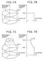 - FIG. 7C is a conceptual diagram showing an enlarged cylindrical HSV color space in a fourth embodiment of the present invention whereas FIG. 7D is a model diagram showing a relation between the saturation (S) and the brightness/lightness value (V) in the enlarged cylindrical HSV color space;