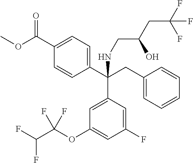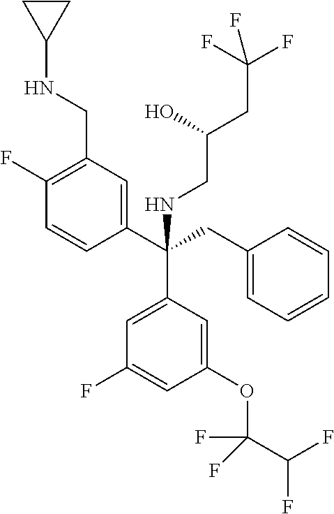 - KZTDWRLJFPXOMK-FGZHOGPDSA-N O[C@H](CN[C@](CC1=CC=CC=C1)(C1=CC=C(F)C=C1)C1=CC(C(F)(F)F)=CC(F)=C1)C(F)(F)F Chemical compound O[C@H](CN[C@](CC1=CC=CC=C1)(C1=CC=C(F)C=C1)C1=CC(C(F)(F)F)=CC(F)=C1)C(F)(F)F KZTDWRLJFPXOMK-FGZHOGPDSA-N 0.000 description 3