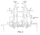 FIG. 2 illustrates a cross-sectional view of a plurality of exhaust gas combustion nozzles connected to a combustion chamber of the combustion apparatus of FIG. 1;