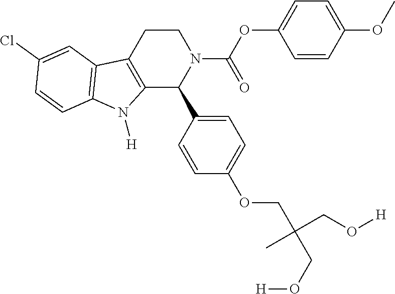 As used herein, the terms “Compound” or “Compound provided herein” generally refer to a compound described in Section 5.1 or Example 6. In one embodiment, the terms refer to a compound of Formula I, II, III or IV. In another embodiment, the terms refer to a compound of Formula Ia, IIa, IIa or IVa. In a specific embodiment, the terms refer to a compound depicted in Table 1. In one embodiment, the terms refer to a Compound disclosed in WO2005/089764, e.g., Compounds in the table on pages 26-98; WO2006/113703, e.g., Compounds in the table on pages 29-102; WO2008/127715, e.g., Compounds in the table on pages 52-126; WO2008/127714, e.g., Compounds in the table on pages 48-123; and U.S. Provisional Patent Application 61/181,653, entitled: METHODS FOR TREATING CANCER AND NON-NEOPLASTIC CONDITIONS, filed May 27, 2009, all of which are herewith incorporated by reference in their entirety. In one embodiment, the terms refer to a particular enantiomer, such as an R or S enantiomer of a “Compound” or “Compound provided herein”. In one embodiment, the terms refer to an R or S enantiomer of a compound of Formula I, II, III or IV. In another embodiment, the terms refer to an R or S enantiomer of a compound of Formula Ia, IIa, IIIa or IVa. In a specific embodiment, the terms refer to an R or S enantiomer of a compound depicted in Table 1. The “Compound” or “Compound provided herein” may comprise one or more asymmetric carbon atoms, i.e. n asymmetric carbon atoms, having either R or S configuration as determined by a person skilled in the art. It is understood that the terms “Compound” or “Compound provided herein” encompass all possible stereoisomers that may be generated based on all asymmetric carbon atoms. For example, if a Compound has two (n=2) assymetric carbon atoms, the terms “Compound” or “Compound provided herein” encompass all four, i.e. 2n=22=4, stereoisomers (R,S; R,R; S,S; S;R). The “Compound” or “Compound provided herein” may be a substantially pure (e.g., about 90%, about 95%, about 98%, about 99%, or about 99.9% pure) single stereoisomer or a mixture of two or more stereoisomers.