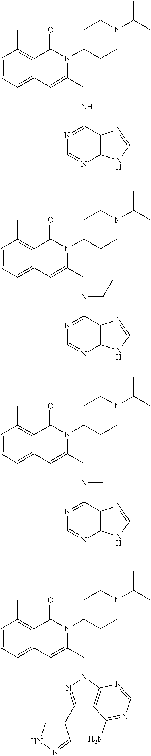 Mice are euthanized, and the spleens are removed and dispersed through a nylon mesh to generate a single-cell suspension. The splenocytes are washed (following removal of erythrocytes by osmotic shock) and incubated with anti-CD43 and anti-Mac-1 antibody-conjugated microbeads (Miltenyi Biotec). The bead-bound cells are separated from unbound cells using a magnetic cell sorter. The magnetized column retains the unwanted cells and the resting B cells are collected in the flow-through. Purified B-cells are stimulated with lipopolysaccharide or an anti-CD40 antibody and interleukin 4. Stimulated B-cells are treated with vehicle alone or with PI3Kδ inhibitors of the present invention such as compound 53 with and without mTOR inhibitors such as rapamycin, rapalogs, or mTORC1/C2 inhibitors. The results are expected to show that in the presence of mTOR inhibitors (e.g., rapamycin) alone, there is little to no substantial effect on IgG and IgE response. However, in the presence of PI3Kδ and mTOR inhibitors, the B-cells are expected to exhibit a decreased IgG response as compared to the B-cells treated with vehicle alone, and the B-cells are expected to exhibit a decreased IgE response as compared to the response from B-cells treated with PI3Kδ inhibitors alone.